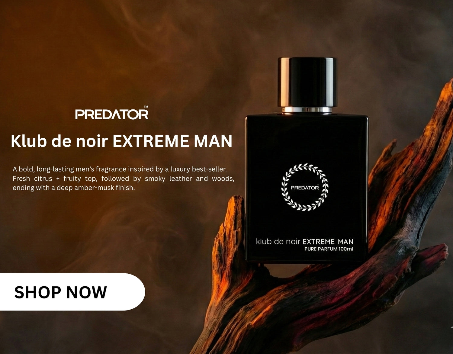 It is a warm, sophisticated fragrance. It opens with rich notes of Sweet Spices, settles into a heart of Cinnamon and Vanilla, and dries down to a deep base of Amber and Wood. It is perfect if you like bold, cozy, and slightly sweet masculine scents.